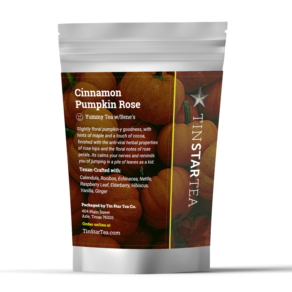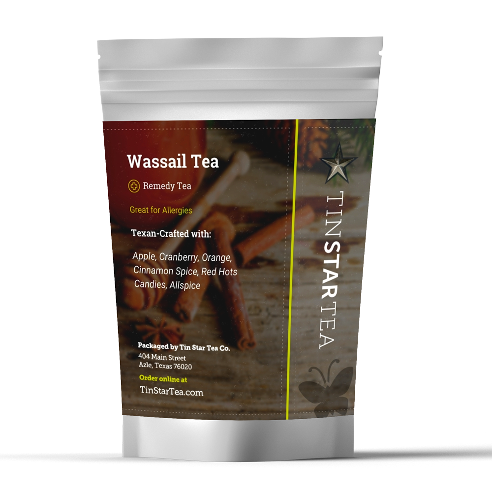 Hibiscus, Apple, Cranberry, Orange, Clove, Cinnamon, Cinnamon Candies, Allspice, Calendula, and natural flavor extracts.