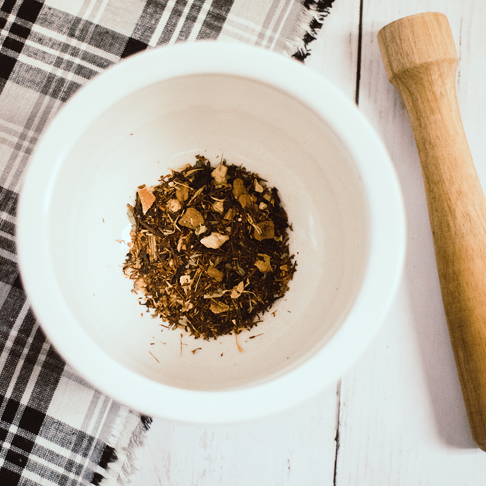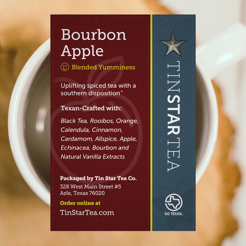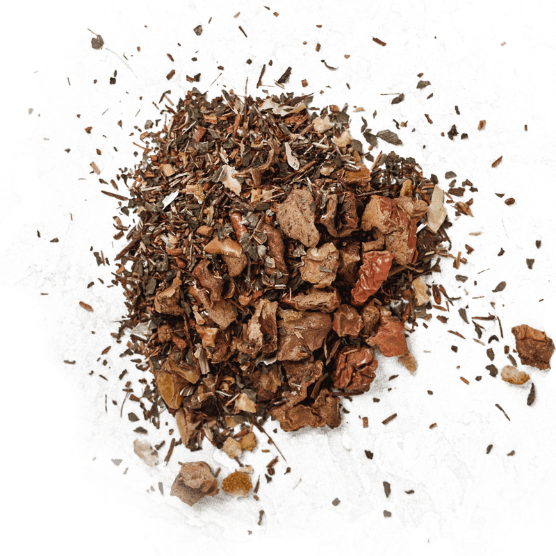 Black Tea, Rooibos, Orange, Calendula, Cinnamon, Cardamom, Allspice, Apple, Echinacea, Bourbon and Natural Vanilla Extracts