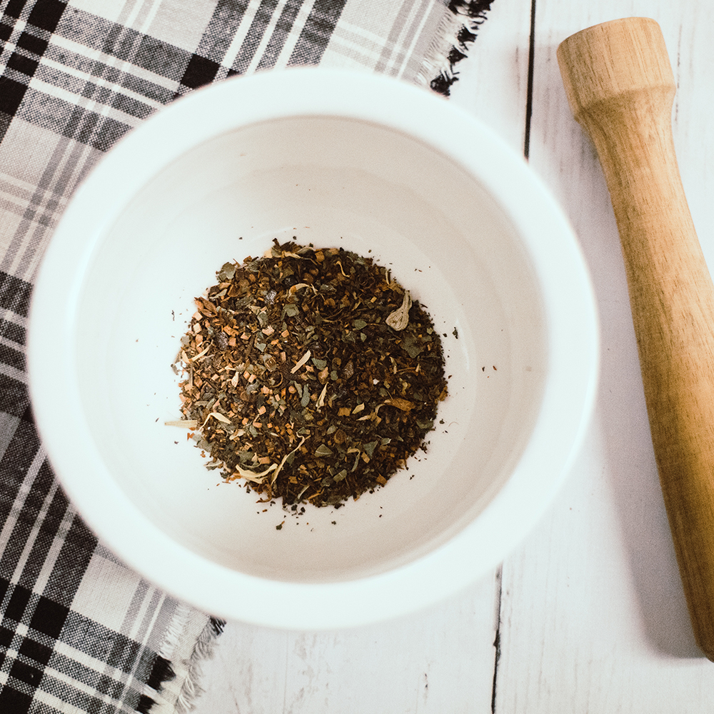 Oolong, Green Tea, Honey Bush, Peach, Mango, Black Pepper, Ginger, Fennel, Chia Seeds, Cinnamon, Ginseng, Cardamom